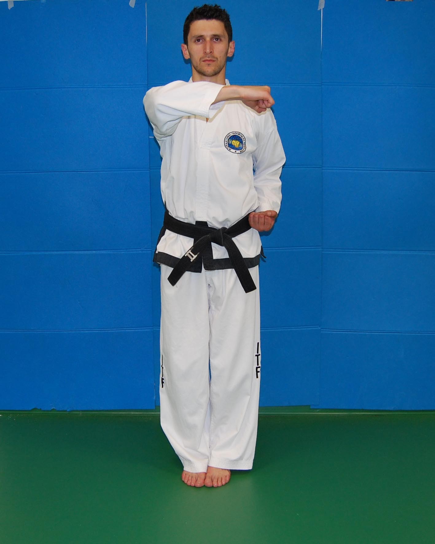 - Moa so kiokja joomuk jirugi il braccio a 90° con il pugno di fronte alla spalla opposta foto 45 - 45a